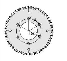 Samtlige tænder er skråslebne til højre. Anvendes til forridsning, tapning, kantlistekapning og formatsavning af plader, monteres sammen med spånknuser.