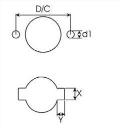 • Skruehullets forsænkningsvinkel (V) alternativt mål (E)