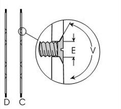 • Skruehullets forsænkning,  højre (C) eller  venstre (D), med klingen vendt så tænderne i overkant vender mod dig