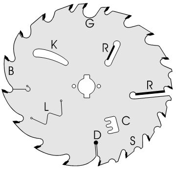 Til forskellige savopgaver findes klinger med special udformning. Dette angives med nedenstående betegnelser.